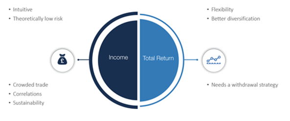This provides the opportunity to match payment requirements precisely, driven from a portfolio's total return rather than relying on a narrow set of income-based assets. We believe that combining a more balanced portfolio targeting total returns, with tailored cashflows, is a better approach for those who are seeking income.