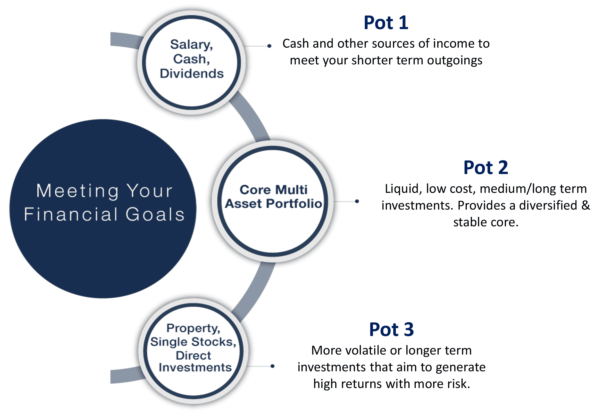 Anything that makes personal finance easier is a bonus. A helpful way of thinking about our assets is to manage them across three hypothetical pots. We do this because the pots tend to represent how we live our lives, thus making financial planning more intuitive, more accessible and helping us to create better outcomes.